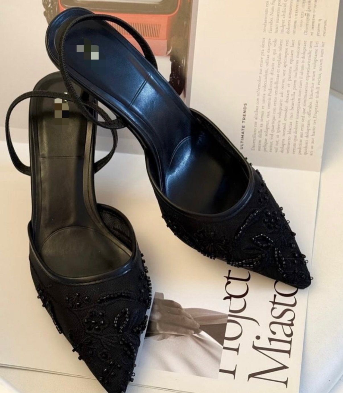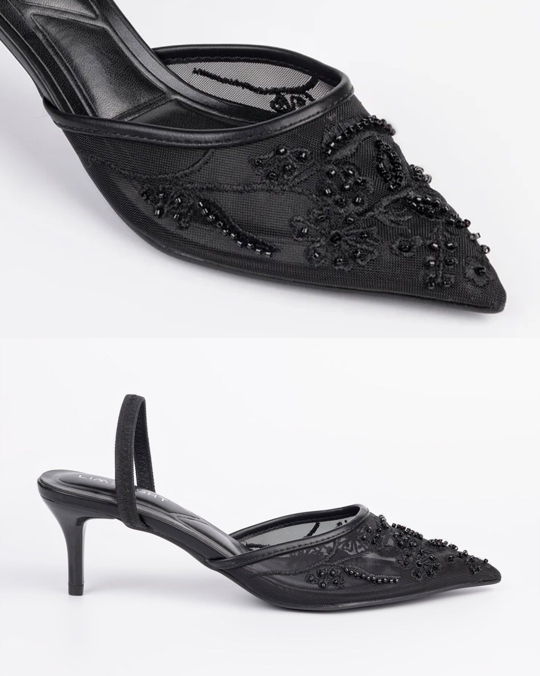 Exude dark romance with the Midnight Petal Mules. Featuring a sheer mesh base adorned with intricate floral embroidery and shimmering black beadwork, these pointed-toe heels are the ultimate statement of sophisticated glamour for any formal occasion.